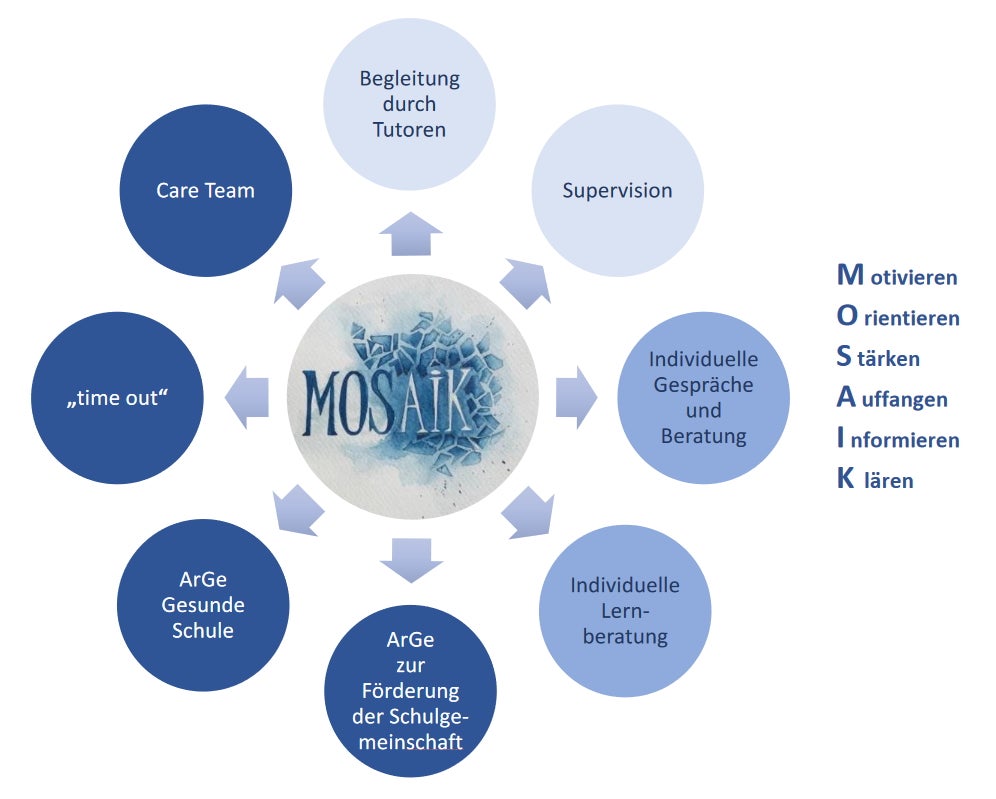 An der Landeshotelfachschule Bruneck wurde im Schuljahr 2018-19 das schulinterne Zentrum für Information und Beratung „Mosaik“ ins Leben gerufen. Die Arbeitsbereiche des Mosaiks sind unterteilt in Angebote für Lehrpersonen, für Schülerinnen und Schüler und allgemeine Unterstützungsangebote.