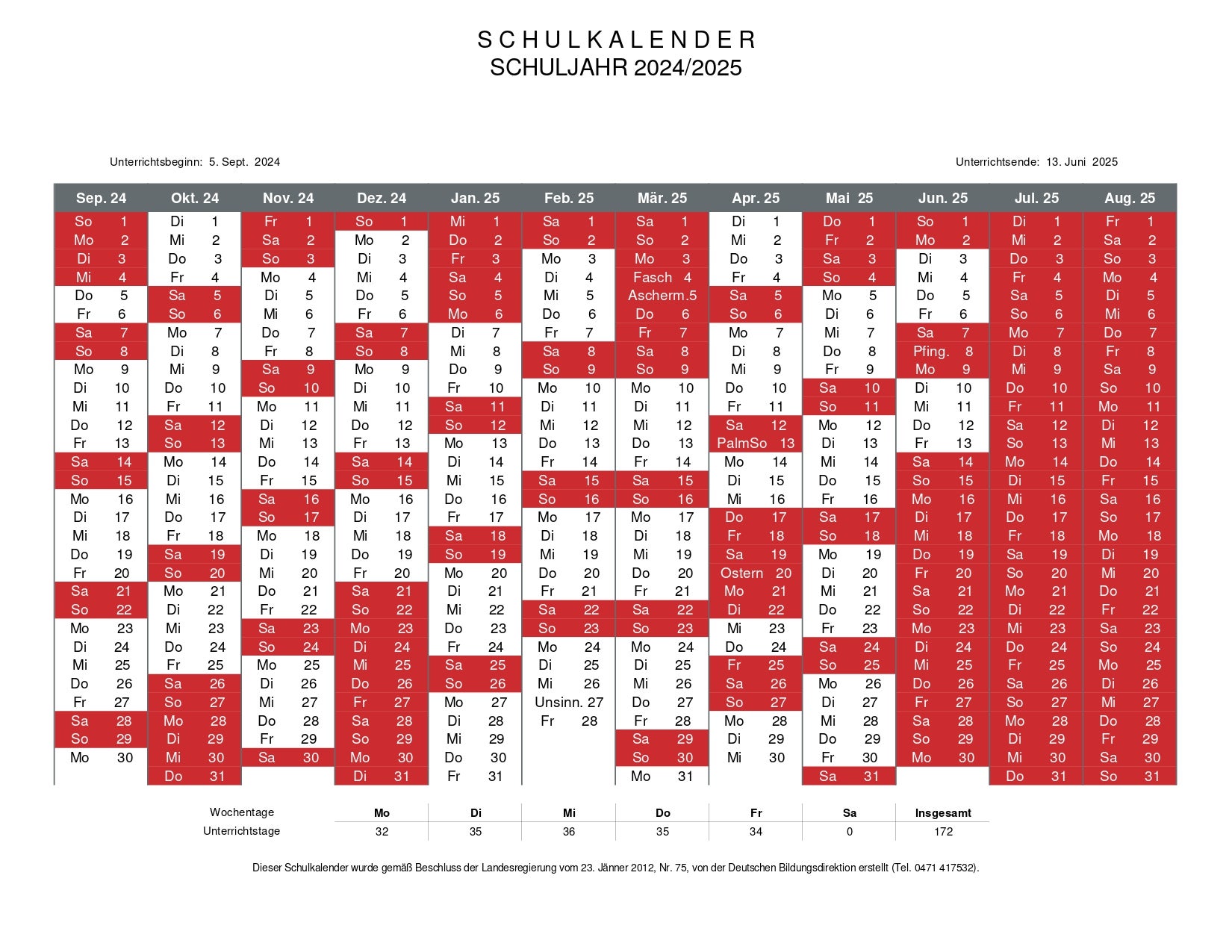 Schulkalender 2024-2025